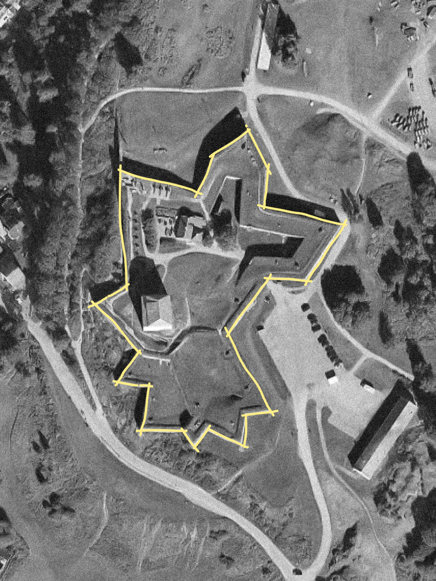 Logotypen är inspirerad av fästningens murstruktur och fungerar som ett bärande grafiskt element i den visuella identiteten.